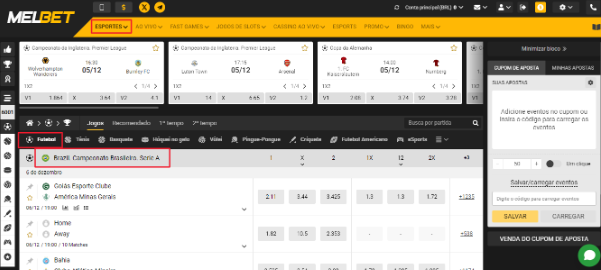 As apostas esportivas em futebol na MelBet podem ser feitas no pré-jogo, ao vivo e nos formatos simples, múltiplos e sistema. Além disso, temos cobertura para vários campeonatos de futebol de diversas regiões e também torneios internacionais. A plataforma dispõe de um serviço seguro que pode ser comprovado de diversas formas, como: